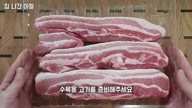 수육용 삼겹살을 먹을 만큼 준비합니다. 기름과 살코기 비율이 적절한 삼겹살이 좋습니다.