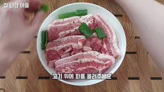 대파도 있다면 썰어 고기 위에 살짝 얹어주세요.