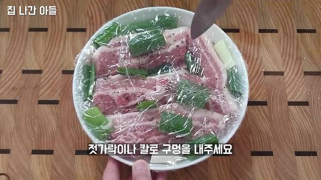 랩은 두 겹 이상 싸고, 포크나 칼로 작은 구멍을 몇 개 뚫어주세요.