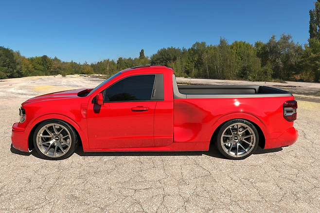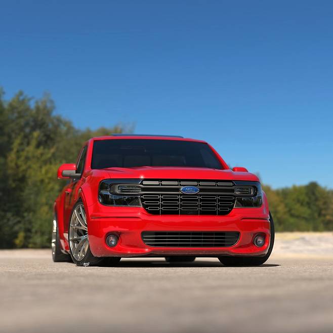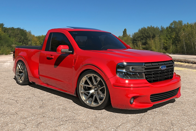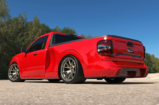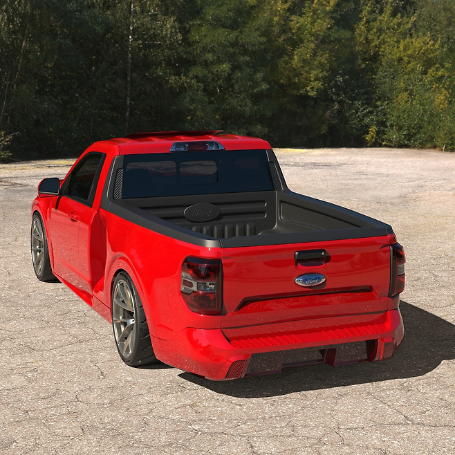 이러한 상황에서 공개된 진홍색 매버릭 렌더링은 단순한 색상 변경이 아닌, 2000년대 SVT 라이트닝에서 영감을 받은 과감한 디자인 재해석이다.