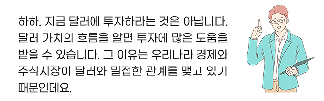 이런 이유로 한국 주식시장에서 원∙달러 환율 변동은 투자자로서 꼭 눈여겨봐야 할 중요 요소입니다.