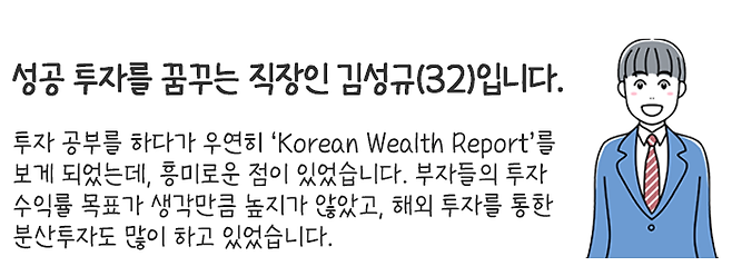 이를 통해 부자들의 투자 마인드와 어떤 종류의 상품에 관심이 많은지를 가늠할 수 있는데, 생각보다 투자 수익률의 목표가 그리 높지 않으며 감당할 수 있는 리스크 관리 내에서 투자하고 있다는 것을 알 수 있습니다.