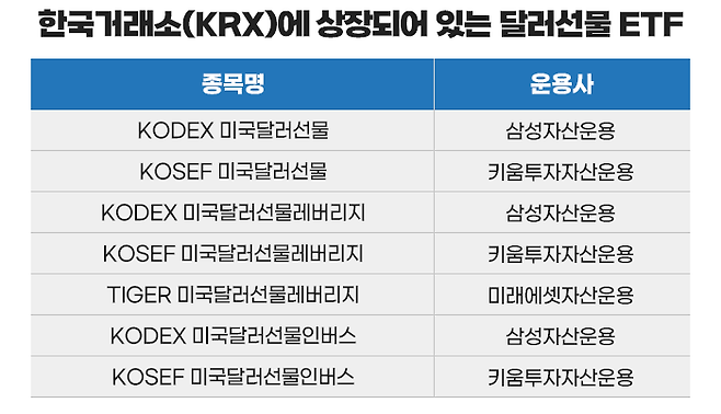 달러에 투자할 수 있는 ETF는 정확히 달러선물 ETF입니다.
