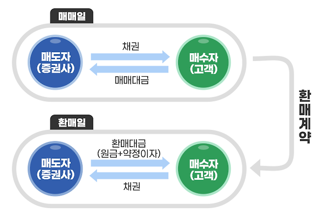 RP(Repurchase Agreement, 환매조건부채권)는 다시 되사주기로 약속하고 판매하는 채권이라고 보시면 됩니다.