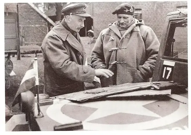 더플코트를 입고 있는 영국군 사령관 버나드 로 몽고메리 장군(우)