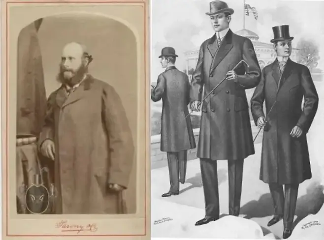 체스터필드 코트를 고안한 조지 스탠호프 6대 체스터필드 백작(좌), 1901년 브랜드 카탈로그 속 체스터필드 코트(우). 사진 출처 : gentlemansgazette