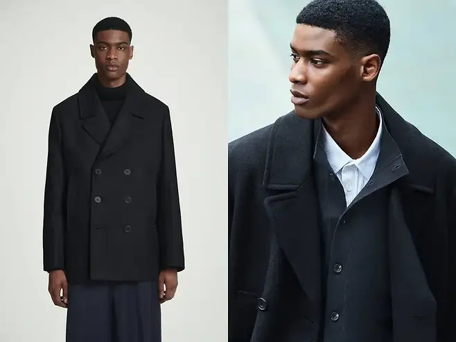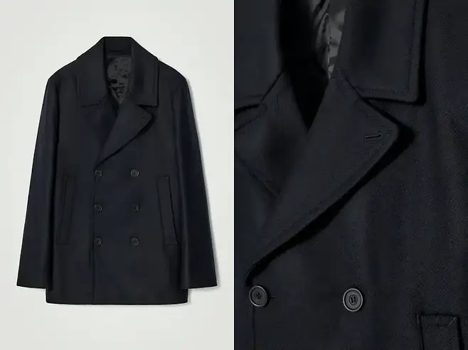코스의 피 코트는 품과 기장을 늘려 마치 병사의 군기처럼 오리지날에 잡혀있던 힘을 뺐다. 집에 있는 다른 옷과도 무리 없이 매치할 수 있도록 만드는 건 코스의 특기다. 어떤 옷이든 보기에 편안하다. 피 코트의 정체성인 큰 카라는 유지하면서 유려한 곡선으로 실루엣을 변형하여 묵직한 코트에선 볼 수 없는 경쾌한 매력이 있다. 싱글 코트 같은 기본 코트는 이미 있고 색다른 코트를 찾는다면 피 코트가 제격이다. 가격은 45만 원. 구매는 여기 (https://tinyurl.com/2w3z4cf4)에서.