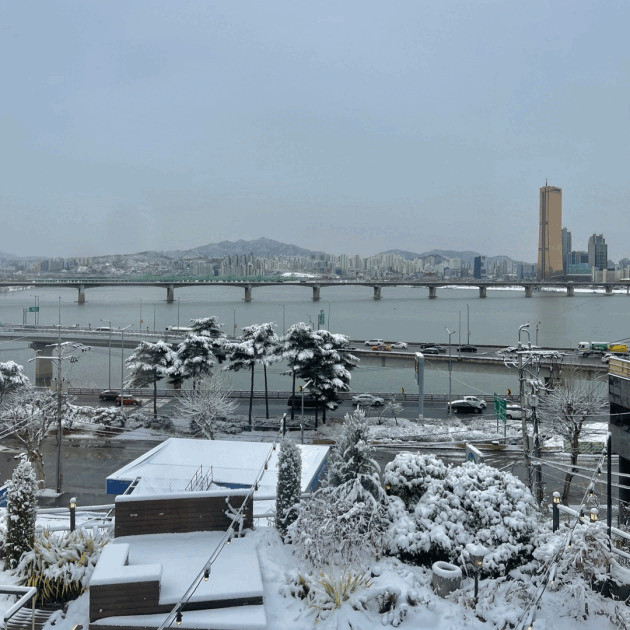 강변북로를 타고 지나가다가 우연히 한 레스토랑을 보았어요. 한강뷰가 너무 예쁠 것 같아 찾아보니 '아이오유'라는 이탈리아 레스토랑이더라고요. 아니나 다를까 입장하는 순간부터 멋진 한강뷰가 등장했어요. 저희가 갔을 땐 눈이 내리는 2월이었는데요. 새하얗게 변한 한강이 어찌나 로맨틱하던지 음식을 주문하기 전부터 설레더라구요. 요즘 같은 날씨에는 부드럽게 반짝이는 한강의 윤슬을 볼 수 있으실 거예요.