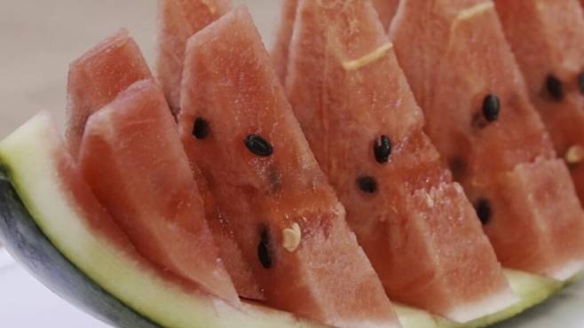수박은 한 번 자르면 수분이 금방 날아가고 단맛이 떨어집니다.