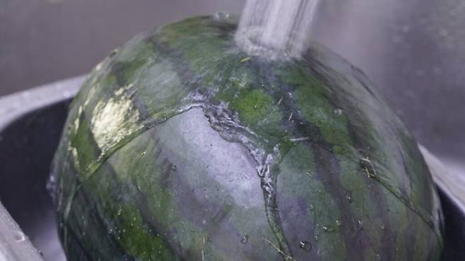 수박 겉면에는 보이지 않는 세균과 농약이 묻어 있을 수 있어요.