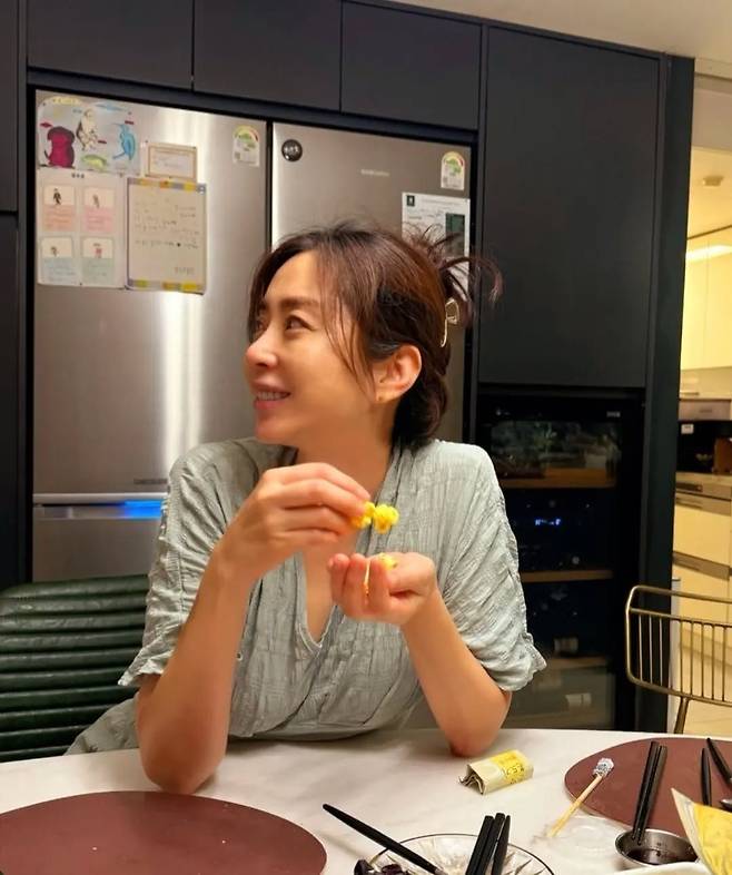 집에서도 우아함을 잃지 않는 송윤아 씨만의 세련된 일상 룩이랍니다.