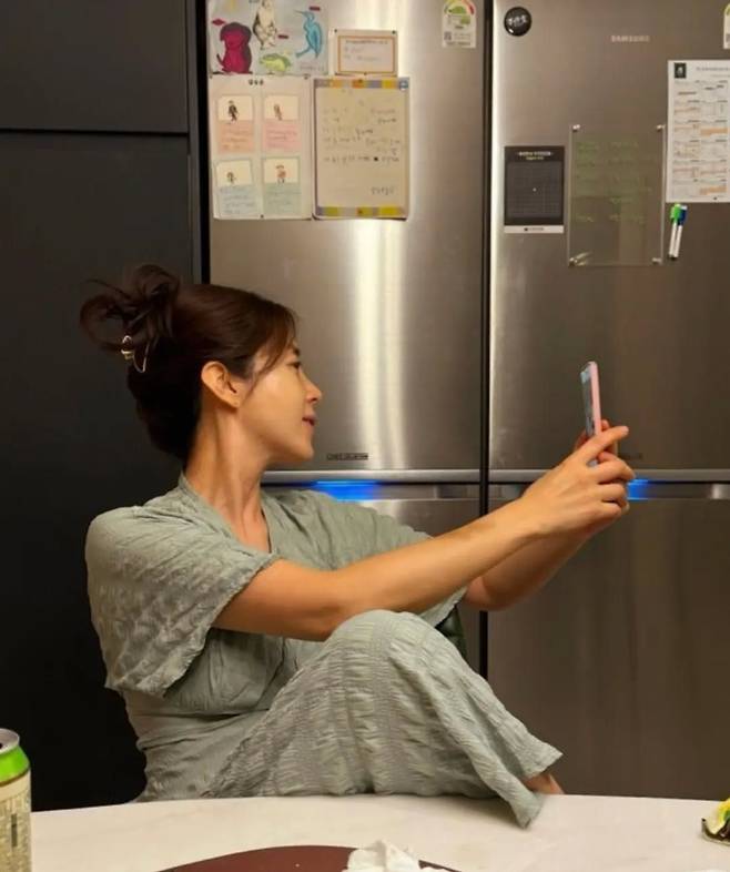 송윤아 씨의 인스타그램 사진 속 헤어스타일은 집에서 편안하게 휴식을 취하는 듯한 내추럴한 분위기가 돋보였어요.