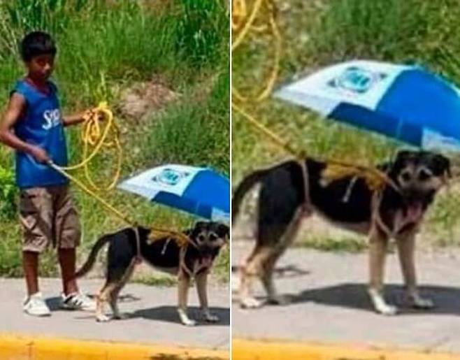 사연은 이렇습니다. SNS상에는 햇빛이 쨍쨍 내리쬐는 날 강아지와 함께 산책을 하러 나온 소년의 모습이 담긴 사진이 공개가 된 것.