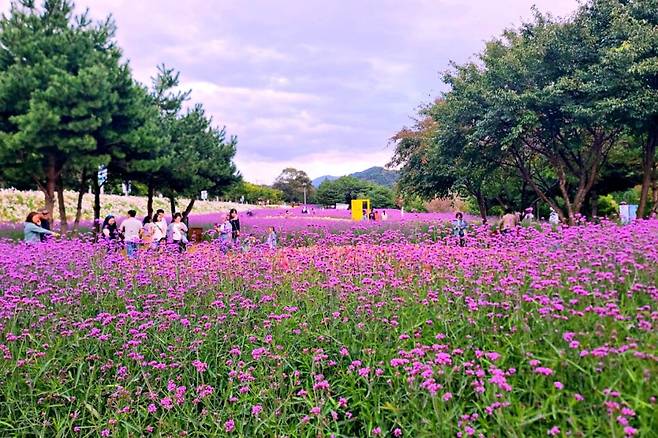 19만㎡ 규모 정원에는 국화, 댑싸리, 마편초, 구절초 등 가을을 대표하는 30여 종의 야생화 20만 주가 식재되어 있다.