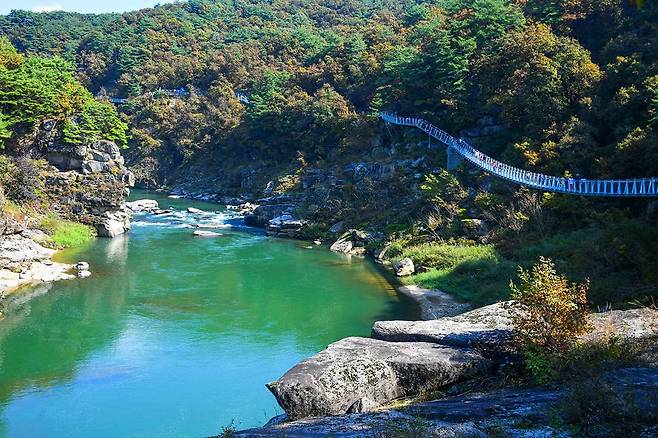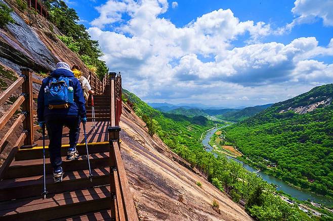 절벽을 따라 설치된 길로, 발 아래로 흐르는 강물을 바라보며 걷는 경험이 독특합니다.