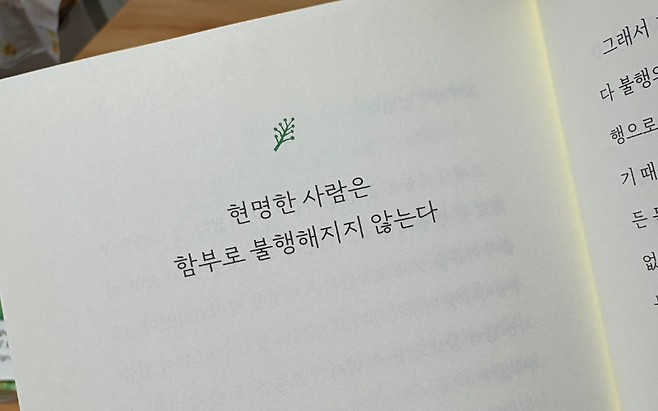 책 『어른의 행복은 조용하다』에서는 이렇게 말한다. “현명한 사람은 함부로 불행해지지 않는다.” 남의 말이 내 하루를 좌우하도록 내버려둘수록 스스로 불행을 키우게 된다는 뜻이다.
