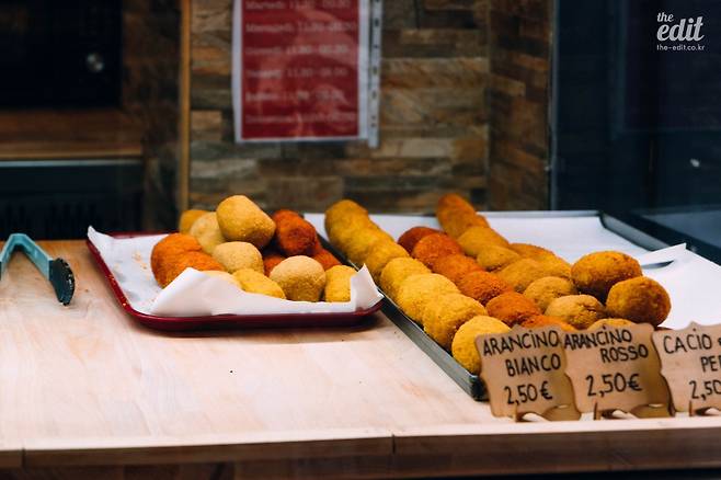 위에서 잠깐 업급했던 수플리다. 수플리는 쉽게 말해 주먹밥을 튀긴 요리라고 보면 된다. 이탈리아 남부 시칠리아에도 아란치니라고 부르는 비슷한 음식이 있다. 유명세만 보면 아란치니의 승이지만, 무엇이 원조인지는 알 길이 없다. 로마 사람은 수플리를, 시칠리아 사람은 아란치니를 원조로 생각하니까. 로마를 여행하는 한국인에게 수플리만큼 힘이 되는 음식이 없을 거다. 맛있는 파스타도 하루 이틀이지, 매일 먹으면 밀가루 때문에 소화는 안되고 속이 더부룩해 질 거다. 그럴 때 수플리를 먹으면 된다. 어디서나 쉽게 볼 수 있고, 꼭 유명한 곳을 찾아갈 필요는 없다. 근데 잠깐, 지금 보니 저 식당에는 수플리라고 적지 않고 ‘아란치노’라고 썼다.