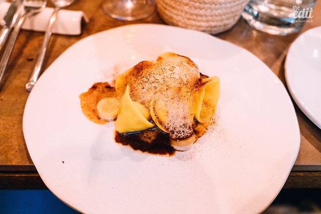 미각이 아무리 좋아도 맛만 알아서는 음식을 알 수 없다. 빈 곳은 셰프와의 대화를 통해 채울 수 있다. 셰프만 아는 비밀 정보가 음식을 완성시켜준다고 믿기 때문이다. 이 식당은 로마 전통 요리를 보여주는 곳은 아니다. 대구 튀김, 라비올리라고 하지만 만두처럼 생긴 요리를 보면 ‘아시안 터치’가 들어갔음을 알 수 있다. 셰프의 부모님 중 한 분이 중국계라고 했고, 그 설명을 들을 때 비로소 모든 요리가 이해가 됐다. 라비올리에 쓴 소스는 간장의 뉘앙스가 있어서 마치 ‘물만두’를 재해석한 것 같았다. 가장 좋았던 건 리가토리를 쓴 파스타였는데, 지금은 메뉴가 바뀐 건지 현재 메뉴판에서는 자취를 감췄다. 파스타를 삶았다가 겉을 구운 것처럼 바삭바삭한 식감이 아주 독특했고, 소스는 그레이비 소스와 약간의 토마토 맛도 났었는데, 어느 한 가지 맛이 도드라지는 요리는 아니었다. 로마에서 꼭 먹어야 하는 아티초크 요리도 있으니 추천한다.