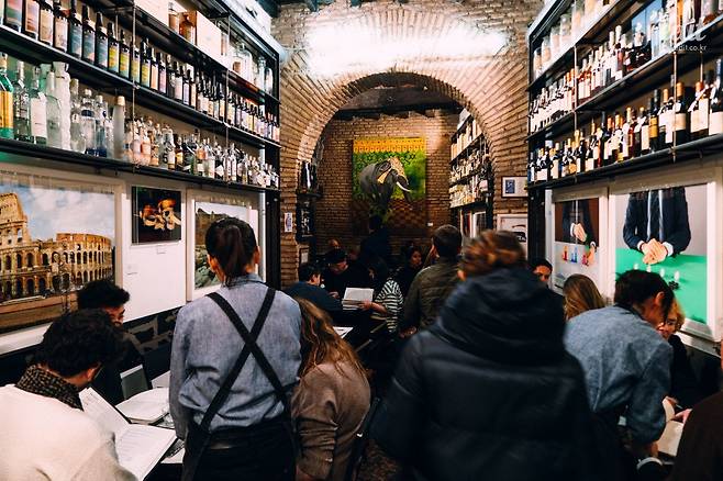 여기가 바로 로숄리에서 운영하는 와인바다. 함께 여행했던 친구가 꼭 가보고 싶다고 해서 이 식당에서 운영하는 ‘와인 테이스팅 모임’을 신청했는데, 몇 잔의 와인이 나오고 각각 어울리는 음식이 서빙된다. 요리가 특별히 기억 남기보다는 와인이 좋았고, 그중 하나는 마음에 들어서 구매했는데 알고 보니 와인이 아니라 ‘아마로’라는 로마의 전통주였다. 아마로는 허브주인데, 식후주로 많이 먹는다고 한다. 로마 어디서나 쉽게 구할 수 있고, 쓴맛와 단맛의 비율에 따라 맛이 다양하니 많이 마셔보고 기념품으로 사가는 것을 추천한다. 참고로 로숄리가 운영하는 베이커리는 ‘Antico Forno Roscioli’라는 곳이다. 줄이 엄청 기니까 각오하고 가야 한다.