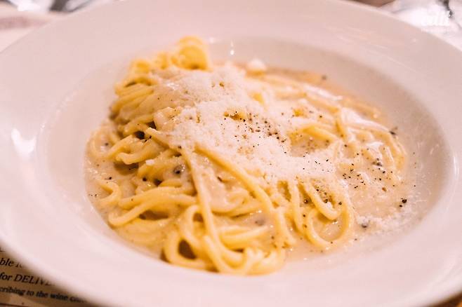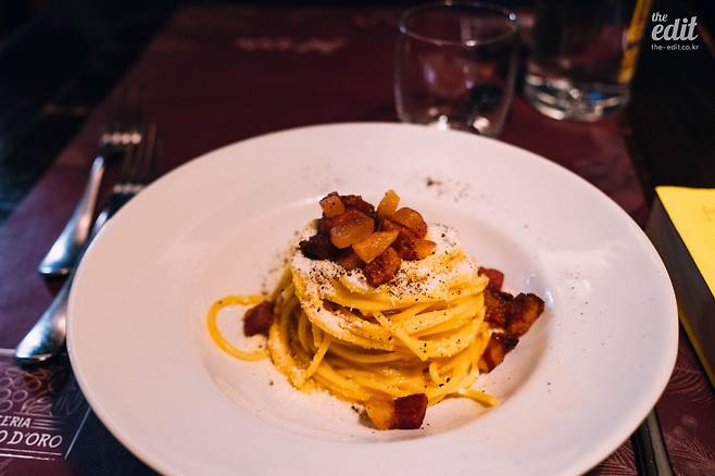 정통 까르보나라는 이렇게 나온다. 토핑? 그런 거 없다.