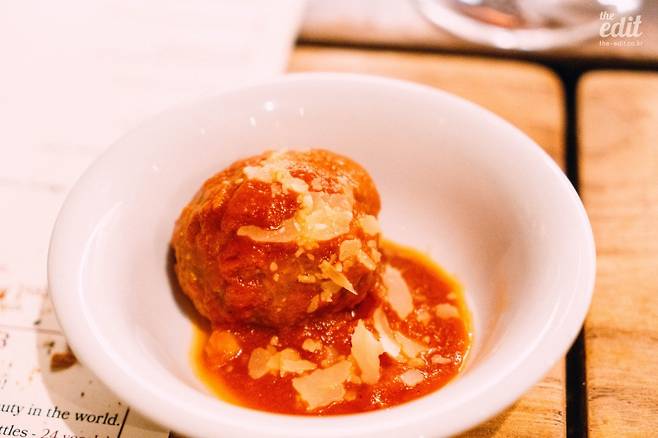 로마식 미트볼. 속은 기름기 없이 살코기만 있어서 다소 퍽퍽하긴 했다.