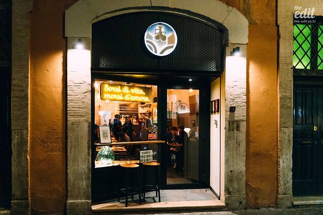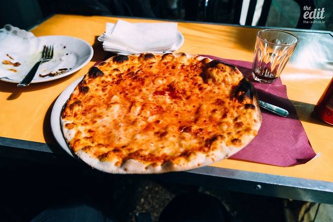 지금 소개하는 핏제리아는 나폴리와 로마 스타일의 중간을 절묘하게 찾아서 인정받는 곳이다. 월드 피자 랭크 8위에 오른 곳으로 수플리(로마식 튀김 주먹밥) 같은 사이드도 있고, 아페롤 스프리츠도 파는 세련된 식당. 피자 한 조각을 손으로 잡고 들어올리면 바삭하고 까끌한 도우의 질감이 손바닥에 전해진다. 한 입 베어 물었을 때는 촉촉함이 있기 때문에 그 대비가 훌륭하다. 익은 정도를 보면 난 같기도 하고, 피자 같기도 하다. 까맣게 탄 부분이 ‘킥’이 되는 신기한 피자랄까. 로마 여행 중 유일하게 두 번 방문한 곳인데, 한국에 돌아와서 아무리 찾아도 비슷한 스타일의 피자는 없더라. 나는 확신한다. 언젠가는 이 피자를 먹으러 로마에 가게 될 거라고. 그땐 혼자가 아닌 둘이 떠나는 여행이면 좋겠다. 로마식 피자의 매력을 꼭 전파하고 싶으니까.