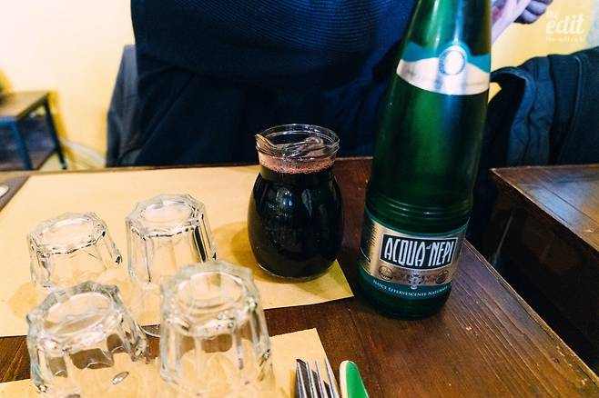 위에서 소개한 핏제리아가 로마식 피자를 대중적으로 풀어낸 곳이라면 Ai Marmi는 본토 스타일이다. 도우는 마치 과자를 먹는 것처럼 ‘빠삭빠삭’해서 식사보다는 과자를 먹는다는 느낌이 들 정도. 이 식당은 트라스테베레라는 지역에 있는데, 이 동네에 오랫동안 살았던 로마인 친구도 여기를 맛집으로 추천할 정도로 현지인에게도 인정받는 핏제리아다. 식당에는 현지인과 관광객이 골고루 섞여 있었는데, 포장마차 스타일의 누추한(?) 야외 좌석이 마음에 들었고, 심지어 와인은 물컵에 그냥 따라주는 게 인상적이었다. 카키색 바람막이를 입은 한 외국인 관광객이 큰 배낭을 옆에 두고 와인을 물컵에 따라 마시는 장면이 아직도 기억에 남는다. 하우스 와인이었으니 캐주얼하게 마신 거겠지만, 덕분에 ‘와인은 꼭 와인잔에’라는 편견이 깨졌다.