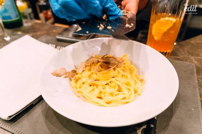 피치 파스타 면은 한국에서도 구할 수 있지만 이 면으로 파스타를 만드는 식당은 많지 않다.