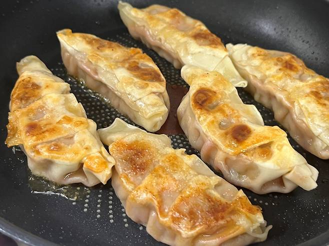 냉동만두도 이렇게만 요리하면 5분이면 충분히 맛있는 군만두가 됩니다. 마지막에 물 붓는 것만 잊지 마세요!