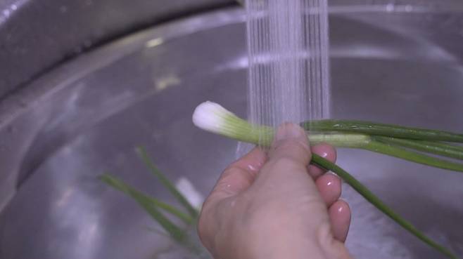 잘 다듬은 쪽파는 물에 3~4번 정도 깨끗이 닦아 내고 사이 부분을 중심으로 깨끗이 씻어 주세요.