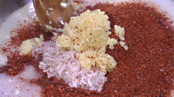 쪽파(대) 1단, 설탕 1T, 매실청 2T, 마늘 2T, 깨 2T, 고춧가루 1컵, 멸치액젓 2/3컵(150ml), 새우젓 2T, 양파(중) 1/2개, 찹쌀풀(찹쌀가루 2T + 생수 또는 육수 2컵)