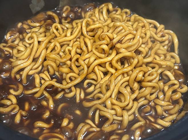 주말에 자주 먹게 되는 짜장라면입니다. 기존에는 짜장라면을 끓일 때 면발을 먼저 끓인 후 물을 따라내고 분말수프를 넣고 끓였는데요. 이보다 더 편하고 맛있게 끓이는 방법 소개합니다.