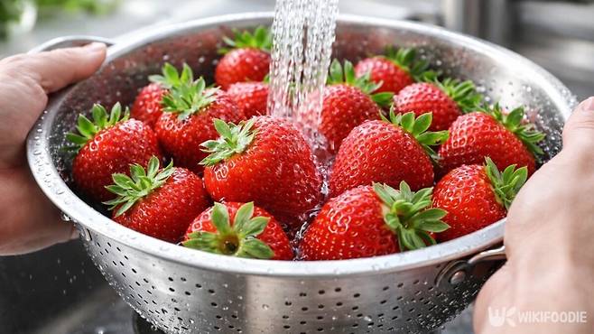 딸기는 껍질이 얇아 성분이 쉽게 스며들어 세제는 쓰지 않는 것이 좋다. 대신 집에 있는 재료로 세척액을 만들어 담금 세척을 한다. 방법은 간단하다. 물 1리터 기준으로 베이킹소다 1큰술을 풀거나, 식초나 소금 1큰술을 넣는다.