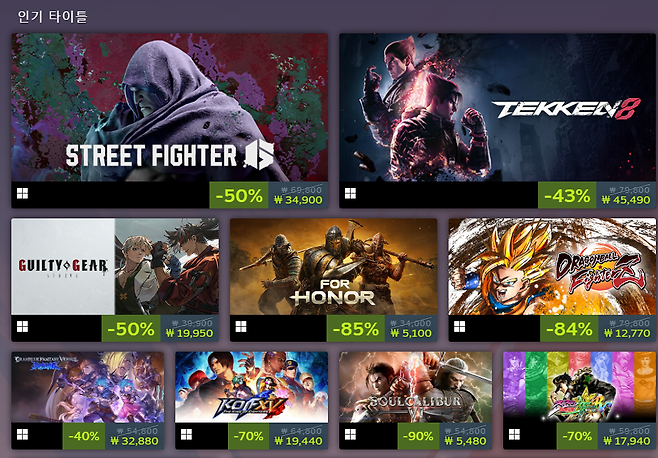이 중 지난해 출시된 격투 게임의 양대 산맥 '철권 8'과 '스트리트 파이터 6'는 각각 4만 5490원과 3만 4900원에 판매 중입니다.