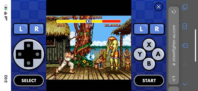 스트리트파이터-au 특별 페이지에 모바일로 접속하면 가상패드를 통해 '스트리트 파이터 2'를 무료로 플레이할 수 있습니다.
