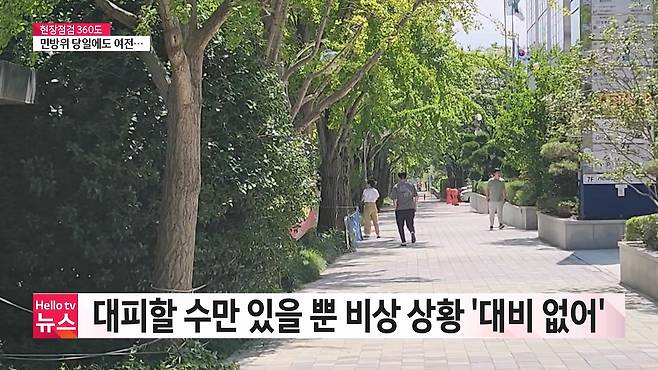 오랜만이라는 점을 감안해도 평소에 제대로 되지 않는 관리에다 민방위 훈련 당일까지 미흡한 이른바 '겉핥기식 대피소'가 되고 있습니다.