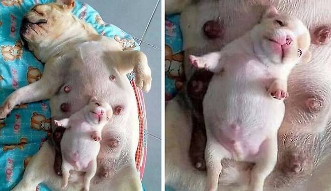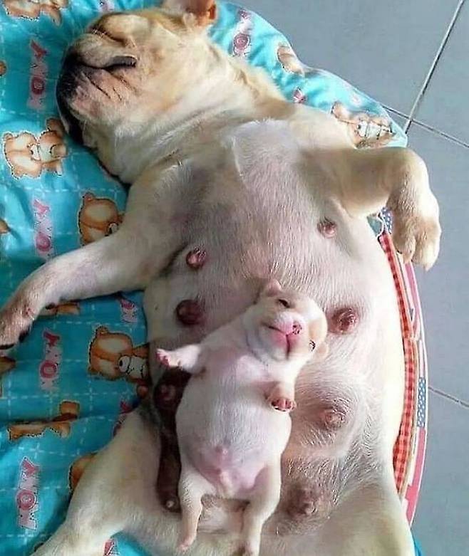 엄마와 아기 댕댕이가 낮잠을 자는데