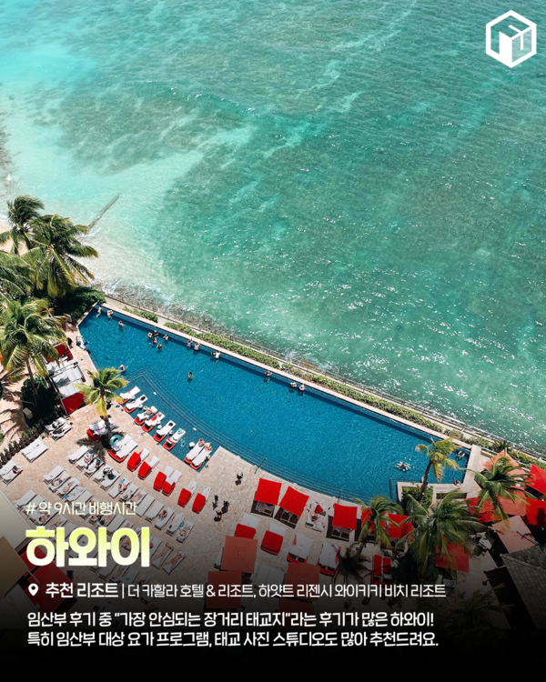 비행시간 약 9시간으로 장거리 비행에도 불구하고 하와이는 가장 안심되는 장거리 태교 여행지로 꾸준히 사랑받는 여행지입니다.