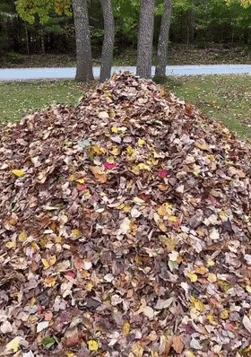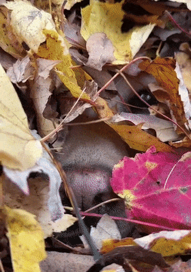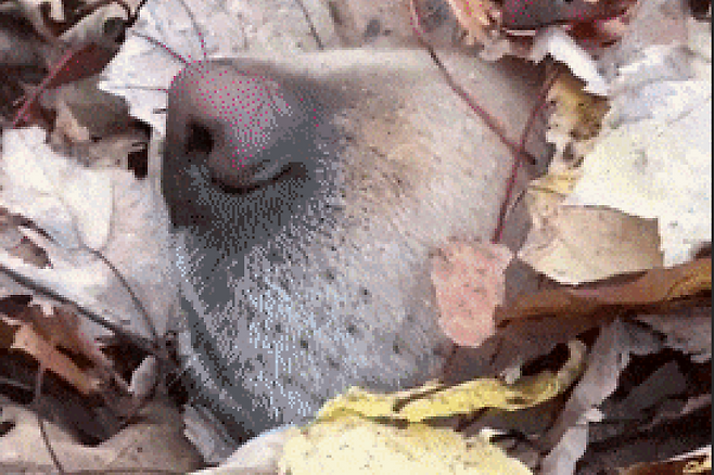 두 마리의 강아지가 낙엽더미 속에서 위장을 하고 숨어있었네요.