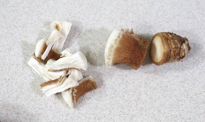 버섯 기둥은 말린 다음 육수 낼 때 사용해도 좋고, 모아두었다가 조림으로 만들어도 맛있습니다.