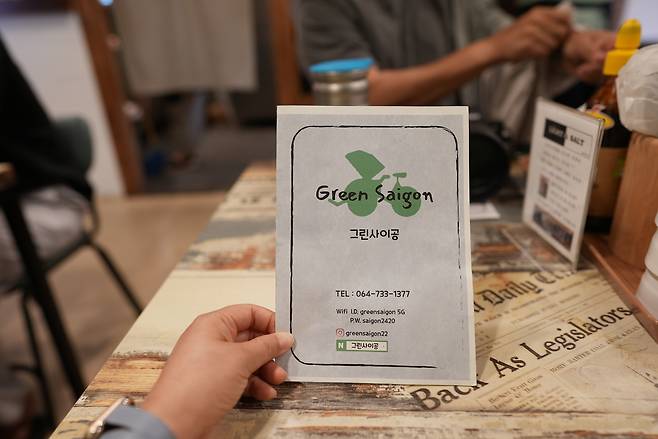 애월 상귀리 베트남 길거리 음식을 모티브로 블루사이공을 런칭하고 2019년 현재 한경면 시내에 위치한 두 번째 직영점인 그린사이공이라고 합니다. 사람들이 많이 방문하면 이유가 있겠죠! 애월은 매번 웨이팅이 있는 것을 보아서 포기했는데 한경면은 이번에 도전해보았는데 러키! 마지막 자리를 앉았어요.