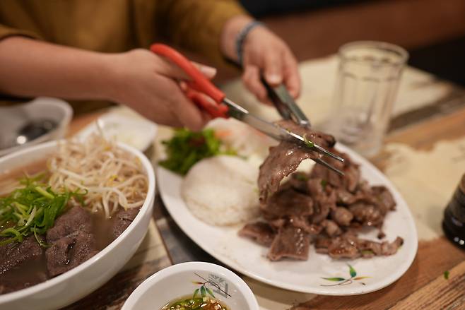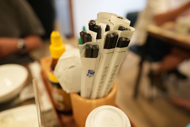저희는 흑돼지 반미 하나, 쇠고기 쌀국수 그리고 껌승을 주문했습니다. 베트남식 숯불 돼지고기 밥이라니 누구나 좋아할 만한 메뉴인 것 같아요. 아래 사진과 같이 젓가락, 수저가 포장이 되어 있어 위생적입니다. 이런 가게 좋아요!