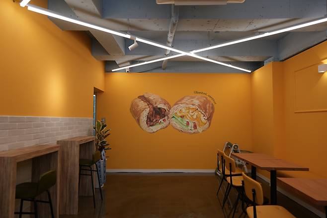 푸드트럭이었을 때는요 포장만 가능했었는데 이제는 매장에서 먹을 수 있어요. 혼밥도 가능한 테이블이라 부담없이 방문하시면 좋을 것 같네요!