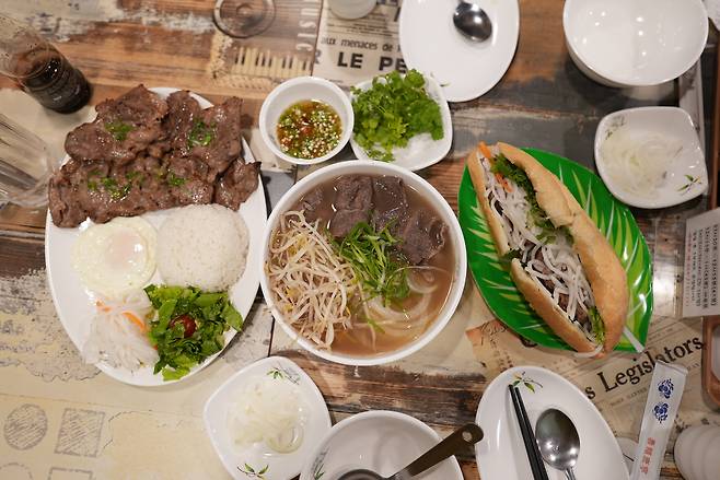다시 한번 찍어보는 전체샷이에요. 반미까지 나오니 더 맛있어보이네요! 이렇게 매일 먹으니 위가 2인분으로 늘어났네요. 오늘도 맛있는 음식 드시면서 행복하시죠?