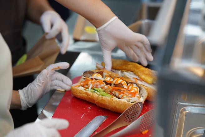 메뉴를 주문 받고 고수를 넣는지 여쭤보는데요. 저희는 둘다 넣어달라고 했습니다. 개인적으로 반미에서 고수가 빠지면 너무나도 아쉬워요. 고수를 꼭 넣습니다.