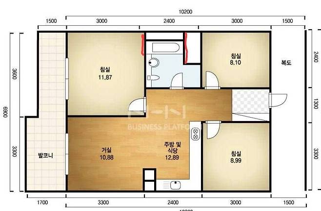 아래 사진에서 빨간면이 곰팡이 이력이 있는 부분들입니다.