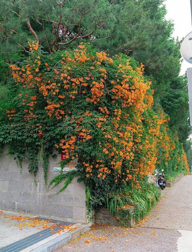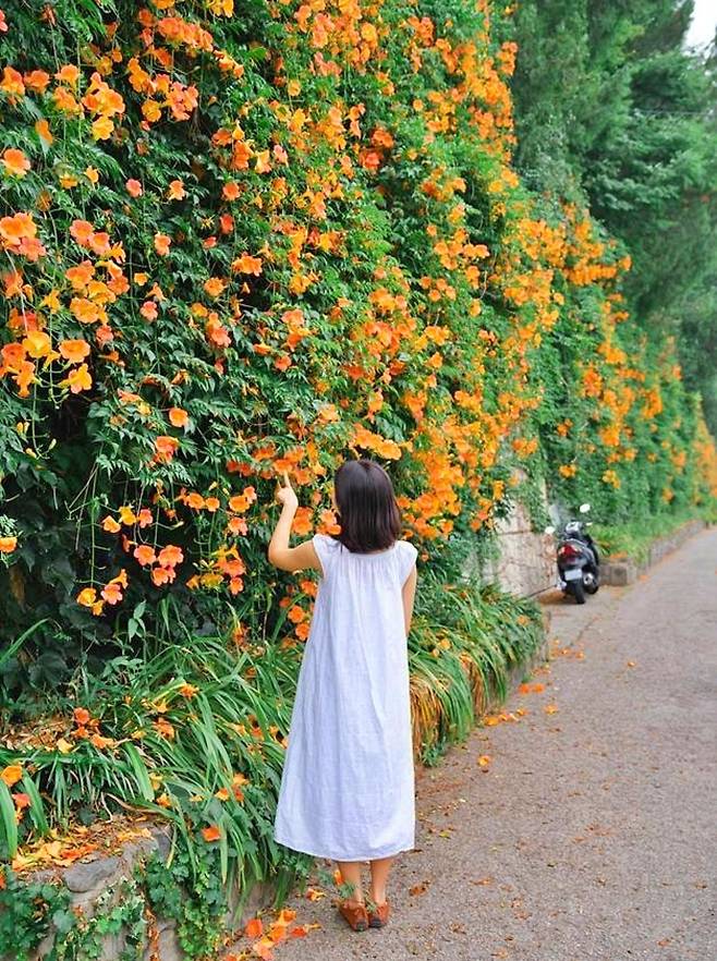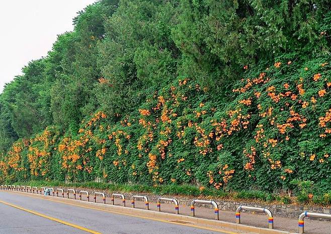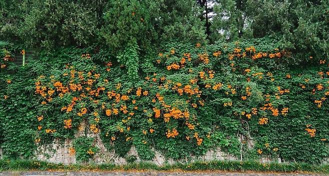 꽃을 보며 걷고, 천천히 시간을 보내고 싶다면 조용한 성남의 능소화길에서 그 여름을 만나보는 것은 어떨까.