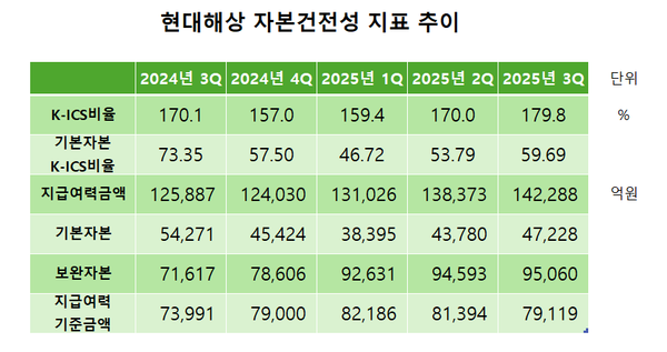 현대해상 관계자는 "자산과 부채 구조를 함께 관리하며 자본의 질을 개선하는 데 주력하고 있다"며 "제도 변화와 무관하게 K-ICS비율을 안정적으로 관리할 수 있는 체계를 지속적으로 강화해 나갈 것"이라고 말했다.