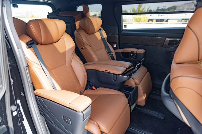 물론 이 차에서 주목할 부분은 2열 시트다. 2열에는 480mm 롱 슬라이드 리클라이너 시트를 달아 2열 승객의 안락함을 극대화한다. 2열 시트는 모든 부분이 전동으로 움직이지만 3열 승객의 탑승을 돕기 위해 수동 슬라이드 기능도 갖춘다. 부드러운 질감의 나파 천연가죽 소재 시트는 착석감도 편하고 포지션도 나무랄 곳이 없다. 키 180cm 이상 다리가 긴 체형이어도 하단 쿠션 부분과 허벅지 앞뒤가 체중 분산을 해줘서 다양한 등받이 각도를 활용 할 수 있다. 토요타의 설명에 따르면 알파드에는 토요타 브랜드 최초로 등받이와 암레스트 부분에 ‘저반발 메모리 폼’ 소재를 사용해 몸으로 전달되는 진동을 최소화했다고 한다. 실제 테스트에서도 2열은 시내와 고속도로를 가리지 않고 편하고 안락한 공간이었다. 2열 오른쪽의 경우 조수석 시트를 앞으로 살짝 밀어서 완전히 풀 플랫 시트를 만들 수 있다는 점도 특징이다. 열선 및 통풍 기능이 기본이다. 공기압으로 가볍게 허리 주변을 눌러주는 마사지 기능도 탑재됐다.