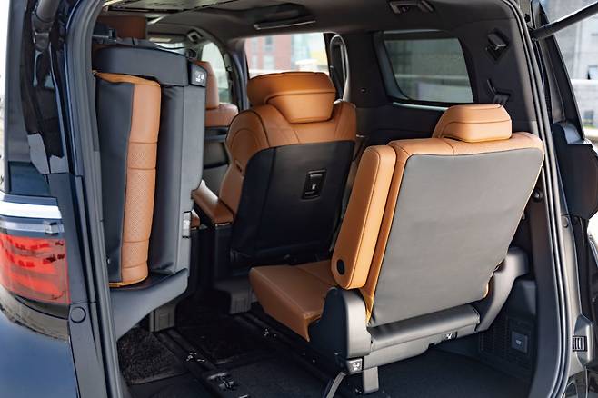 천장 가운데 달린 14인치 모니터를 통한 엔터테인먼트 기능도 특징이다. 좌우 독립형 선루프, 전동식 셰이드, 2열 슬라이딩 자동 도어 등 프리미엄 소퍼드리븐 자동차의 주요 기능을 대부분 완벽하게 구현한다. 실제로 2열을 경험하며 다양한 테스트를 해보며 사용자 중심의 공간이라는 생각이 들었다. 기능을 마구잡이로 넣어둔 것이 아니라 실제로 장시간 사용해 보면서 불편한 부분을 개선하기 위해 노력한 디자이너들의 열정이 느껴졌다. 3열 공간의 경우 여느 미니밴과 비슷하다. 특징이라면 충전 포트가 기본 USB C-타입이라는 것과 좌우 선셰이드가 전동식이라는 점. 시트좌우 공간이 넓고 무릎 공간도 충분한 편이라 2명의 성인이 앉기에 부족하지 않은 공간이다. 3열에서 느껴지는 승차감과 흔들거리는 멀미 유발 요소(?)도 다른 미니밴들에 비하면 나쁘지 않다.